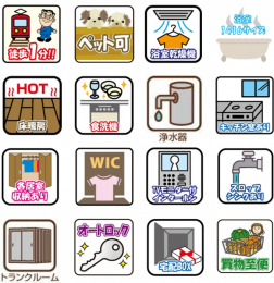 スロップシンク/床暖房/浴室乾燥機/食器洗浄乾燥機/システムキッチン/対面式キッチン/シャワートイレ/TVモニタ付インターホン/オートロック/ウォークインクローゼット/全居室収納/ペット可/アルコーブ/エレベーター/駐輪場/宅配ボックス/セキュリティ充実/CATV/BS/CS/スーパー徒歩10分以内