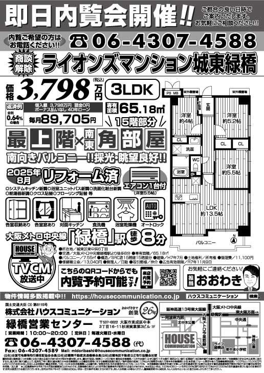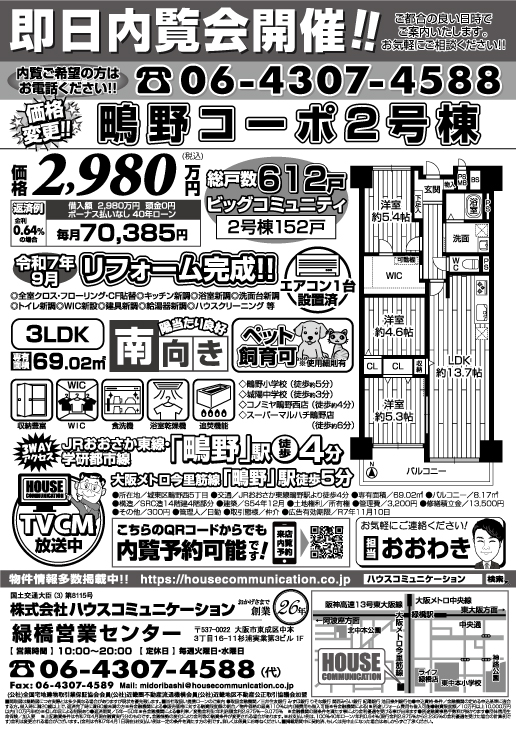 即日内覧会 緑地公園営業センター 藤和シティホームズ江坂2