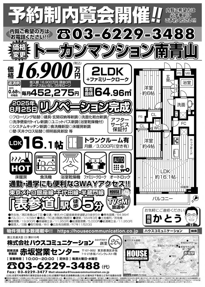 予約制内覧会! 赤坂営業センター トーカンマンション南青山