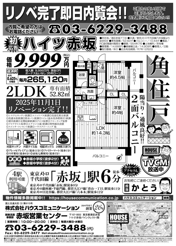 即日内覧会! 赤坂営業センター ハイツ赤坂