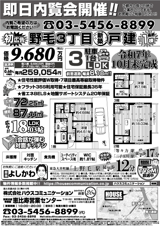 即日内覧会! 恵比寿営業センター 不動産購入 広告チラシ 野毛3丁目13-12