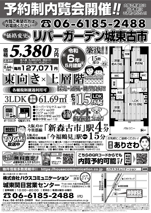 価格変更!予約制内覧会! 城東関目営業センター リバーガーデン城東古市