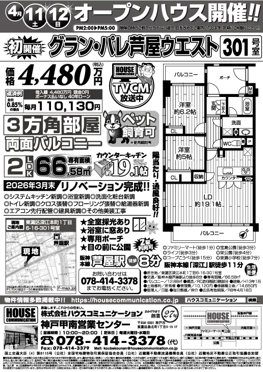 4/11(土)~4/12(日) オープンハウス! 神戸甲南営業センター グラン・パレ芦屋ウエスト