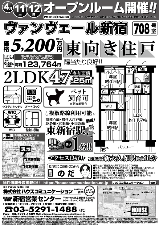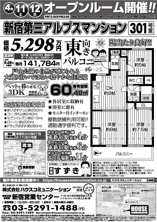 4/11(土)~4/12(日) オープンハウス! 新宿営業センター 不動産購入売却 広告チラシ シティハウス西大久保