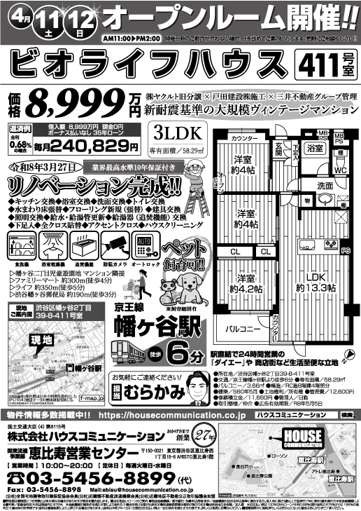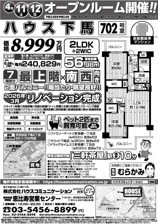 4/11(土)~4/12(日) オープンルーム! 恵比寿営業センター ハウス下馬