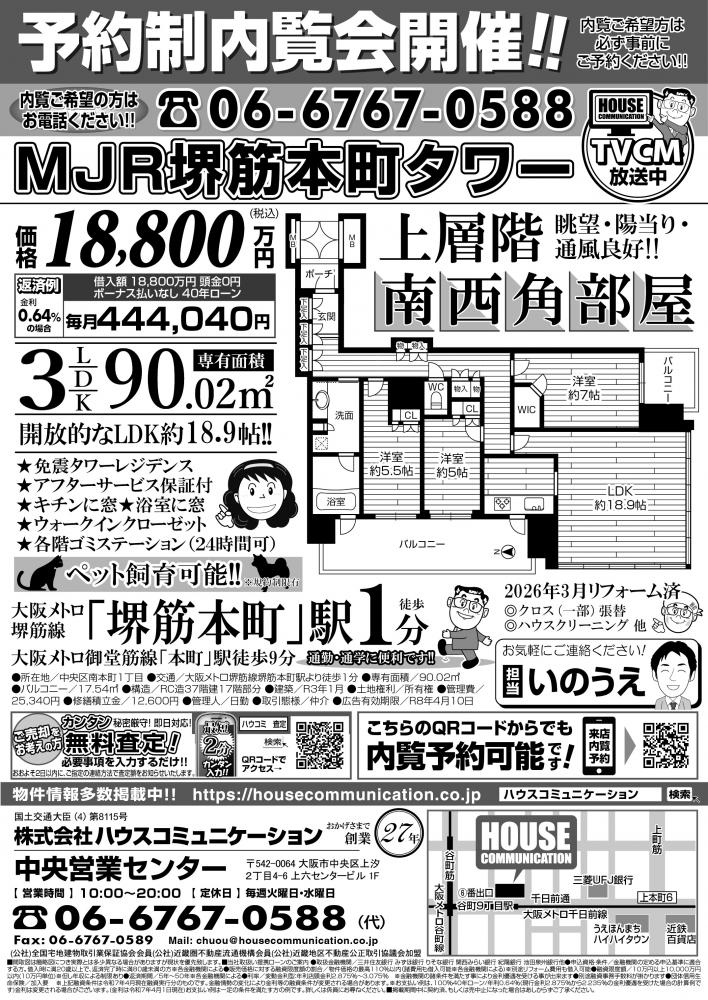 予約制内覧会 中央営業センター 不動産購入 広告チラシ MJR堺筋本町タワーのWEBチラシ情報 | 関西(大阪・北摂・神戸)・関東(東京)で不動産の購入・売却、注文住宅、リノベーションの事なら株式会社ハウスコミュニケーション