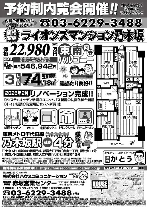 予約制内覧会! 赤坂営業センター ライオンズマンション乃木坂
