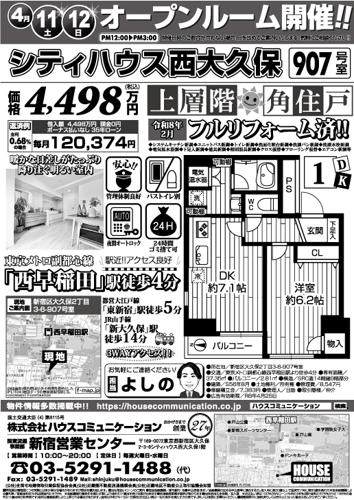 4/11(土)~4/12(日) オープンハウス! 新宿営業センター 不動産購入売却 広告チラシ シティハウス西大久保