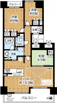 管理費等 | 5,740円 | 修繕積立金 | 23,120円 | 築年月 | 2013年3月築 | 間取り | 3LDK (LDK15.9/洋室6/洋室5/和室4.5) |