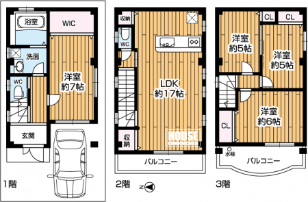 | 採光面 | - | 構造/階数 | 木造 /地上3階建 |
